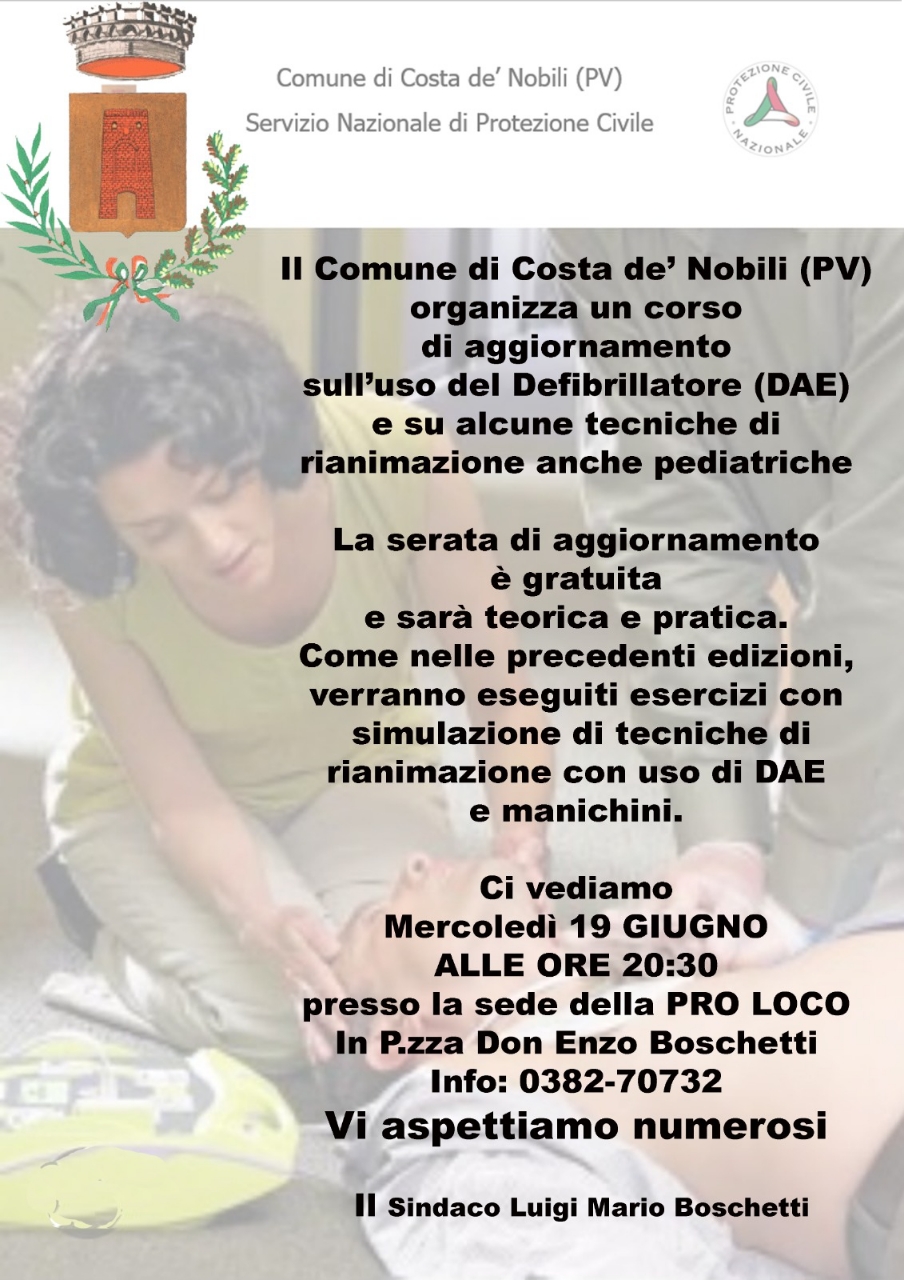 Corso di aggiornamento sull'uso del defibrillatore (DAE) e su alcune tecniche di rianimazione anche pediatriche.